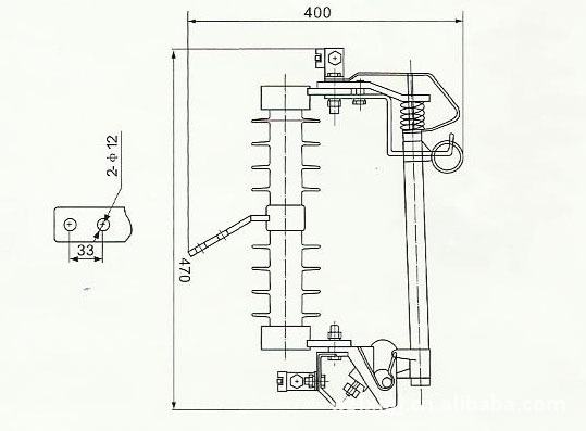 拉負(fù)荷跌落式熔斷器增加彈性輔助觸頭及滅弧罩,用以分、合負(fù)荷電流。